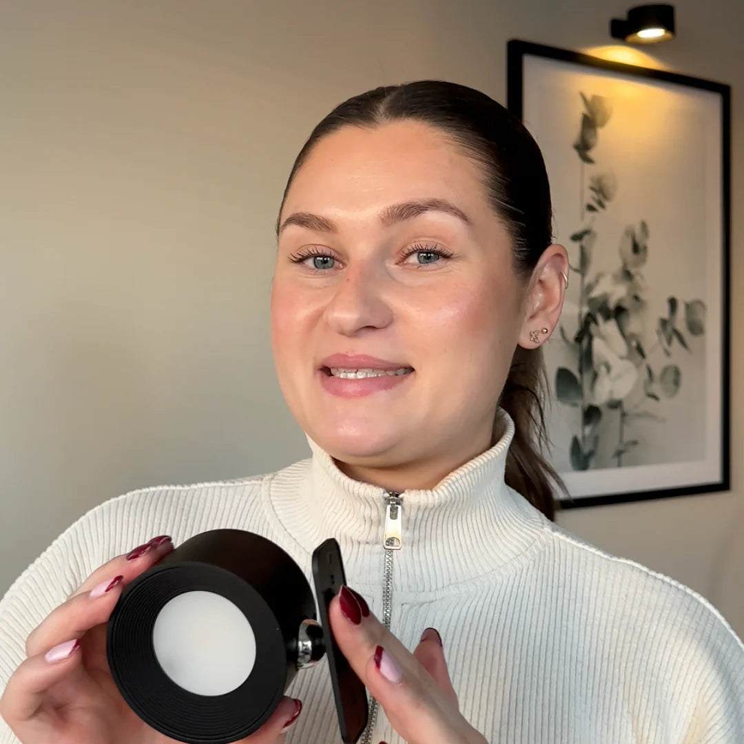 A Luminária de Parede Infinity é extremamente fácil de instalar e usar. Não necessita de fios ou ferramentas. Basta remover uma das fitas adesivas inclusas, fixar a luminária no local desejado e pressionar por alguns segundos. Pronto.