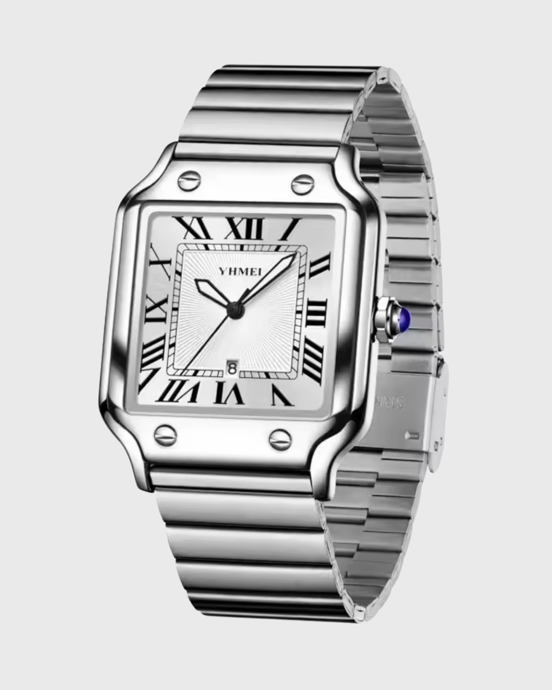 Definido por sua elegante caixa quadrada, este relógio combina distinção sutil com resistência para o dia a dia — feito para o homem que valoriza simplicidade refinada e força discreta.