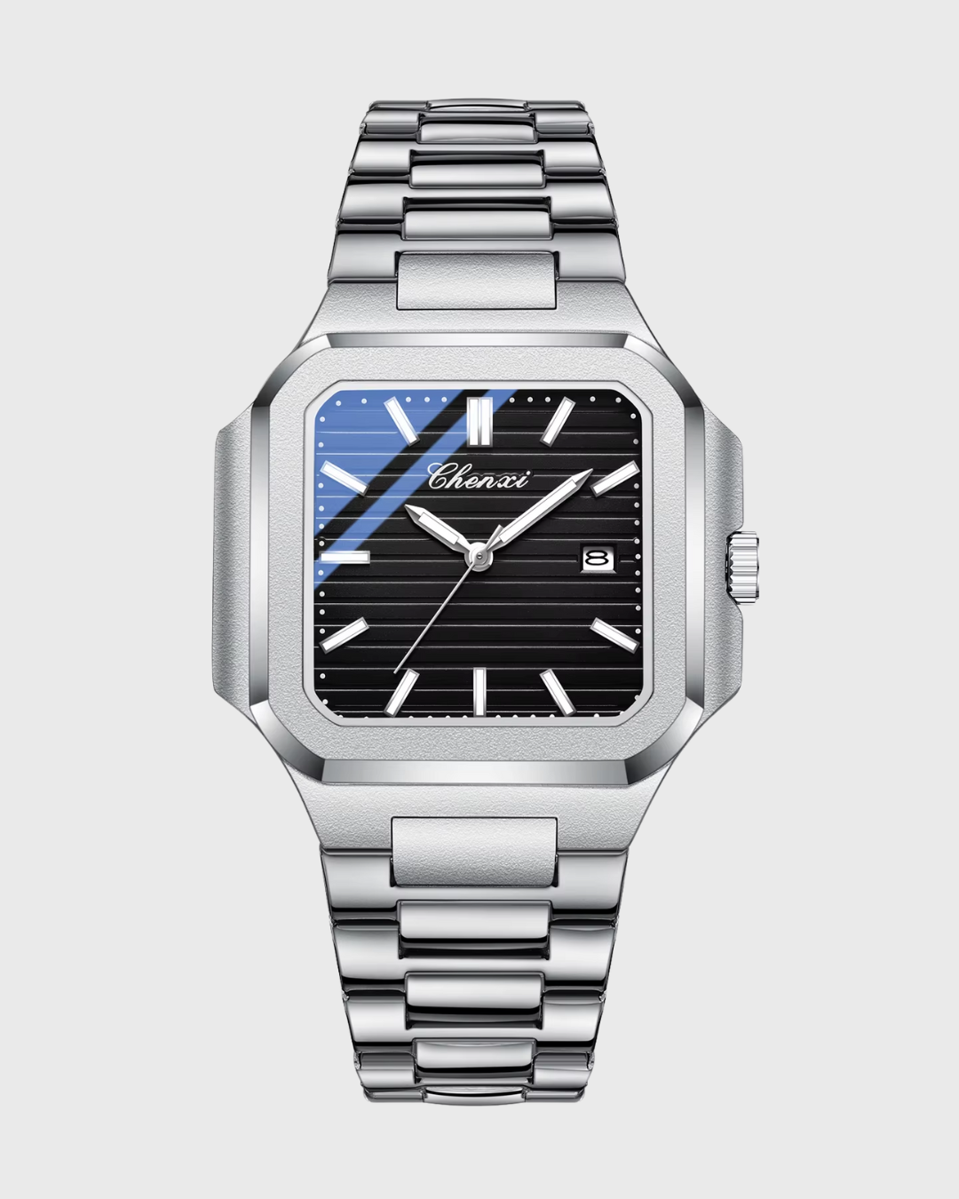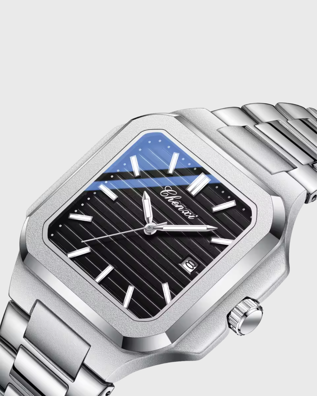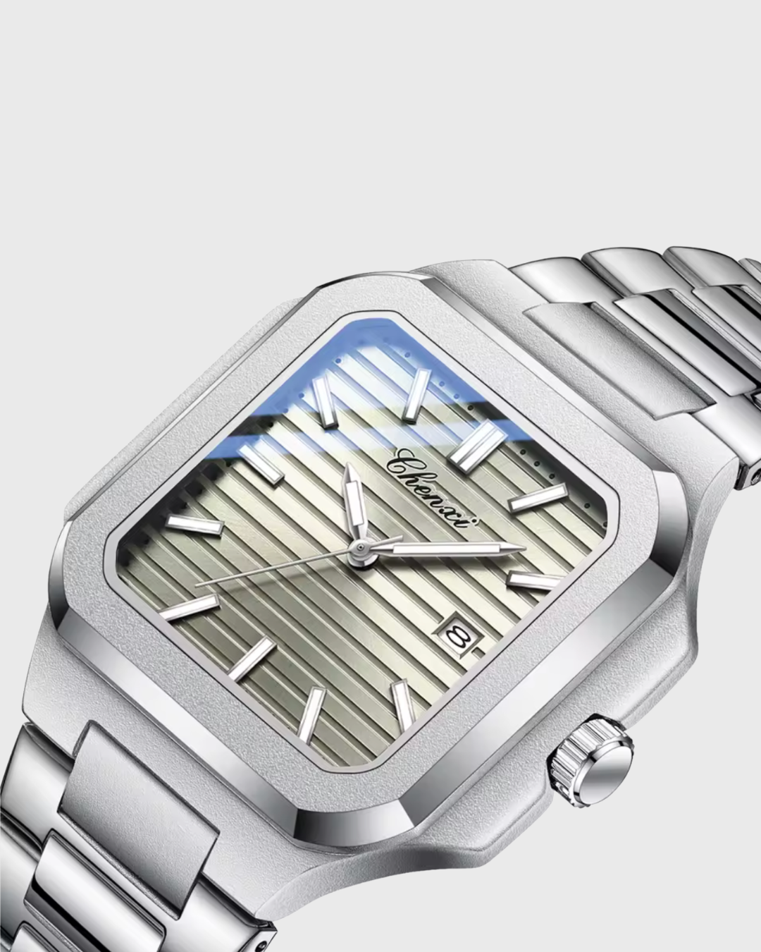 Com mostrador maior e detalhes funcionais, este relógio foi projetado para uma simplicidade ousada. Feito para homens que se movem com propósito — combinando praticidade e design atemporal.